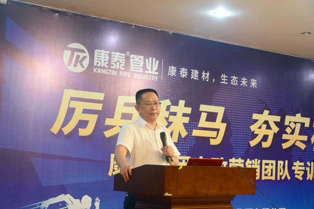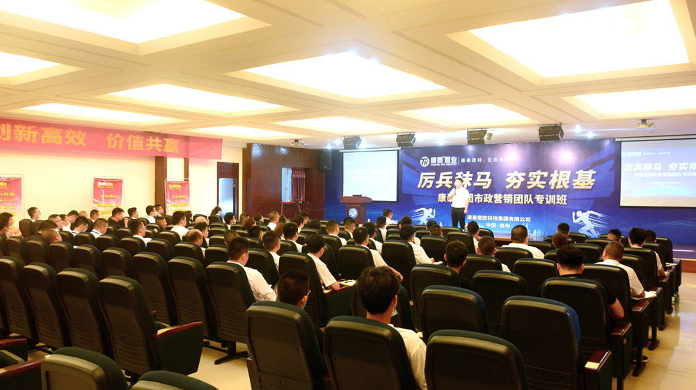 市政總監(jiān)何朝暉就此次培訓的目的作了三點闡述,一是受國際國內市場環(huán)境,新冠疫情影響,塑膠管道行業(yè)的改革和調整勢在必行。公司根據這些變化及時做出戰(zhàn)略和結構上的調整是及時和正確的;二是目前中國塑料管道行業(yè)產能嚴重過剩,塑膠管道市場也正向有技術、有產品、有品牌知名度的企業(yè)集中。加之未來幾年國家將不斷加大在市政基礎設施領域的投入,這對康泰來說是機遇,也是突破;三是本次培訓就是撈干貨,徹底講清楚講透徹我們的市政五大產品系統(tǒng),打造“差異化”產品,搶單殺單。希望市政銷售團隊全體精英要認真領會培訓的目的和意義,努力提升自己,上下打通。