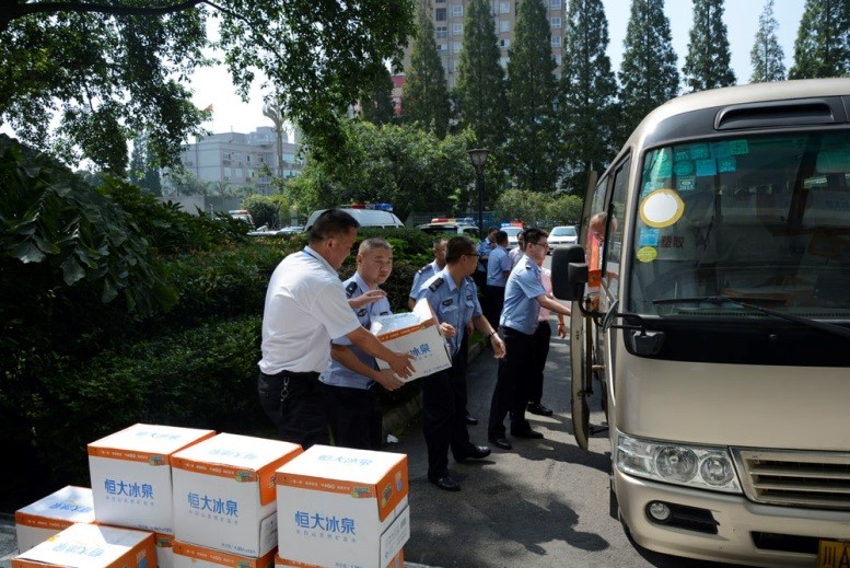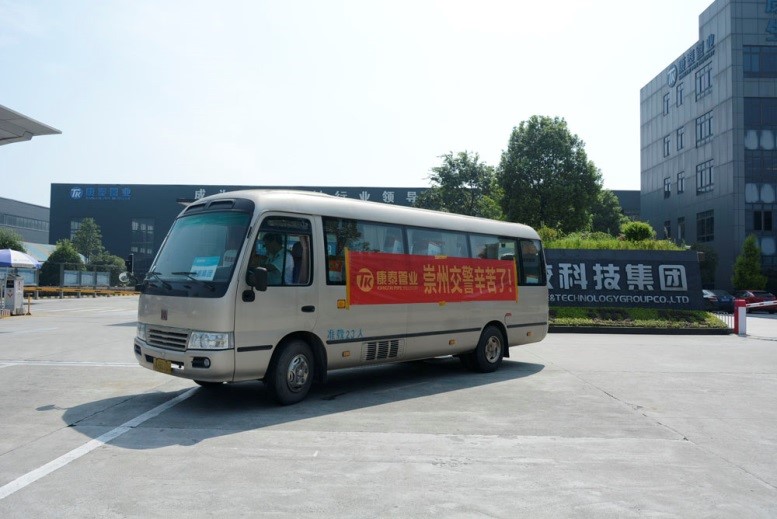 ? ? ? ? “為了方便市民出行,交警365天都堅持在一線執(zhí)勤,特別的辛苦。作為本地企業(yè),我們也希望自己的一點小舉動能為廣大交警和協(xié)管員同志送去一份清涼和關(guān)懷,以感謝他們的辛勤付出?!?月16日上午,康泰集團工會主席吳彬帶領(lǐng)公司員工專程將礦泉水和防暑藥品等送到了崇州市交警大隊,并轉(zhuǎn)交到交警手中,為他們帶去了絲絲涼意。