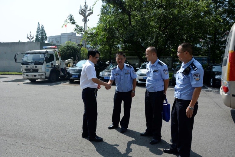 圖為康泰集團工會主席吳彬與交警大隊領(lǐng)導(dǎo)親切握手