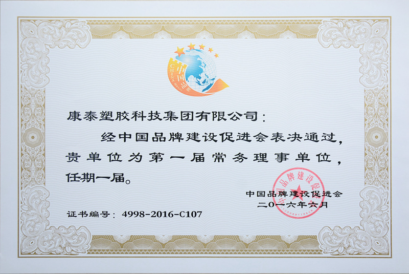 ? ? ? ?6月15日-17日,由中國品牌建設(shè)促進(jìn)會主辦的“2016年度全國品牌建設(shè)研討會”在廈門召開。會上,康泰塑膠科技集團(tuán)被評為“中國品牌先進(jìn)會員單位”,同時授予康泰塑膠科技集團(tuán)及林云青董事長“第一屆常務(wù)理事單位”和“第一屆常務(wù)理事”榮譽(yù)稱號。