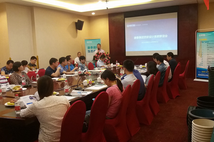 ? ? ? ? 5月20日下午四點,康泰集團2016年度西安區(qū)域設計系統(tǒng)聯(lián)誼會在西安唐朝酒店召開??堤┘瘓F市場總監(jiān)鄭光鏵、銷售總監(jiān)何朝暉、技術研發(fā)總監(jiān)張雙全、市場中心新品推廣經理趙謙、西安分公司經理鄒鑫及分公司同事等出席了本次會議。會議的召開是為了進一步增進與西安設計系統(tǒng)的溝通和聯(lián)系,加大新技術成果轉化,答謝設計系統(tǒng)專家對康泰集團一直以來的支持而舉辦的。
