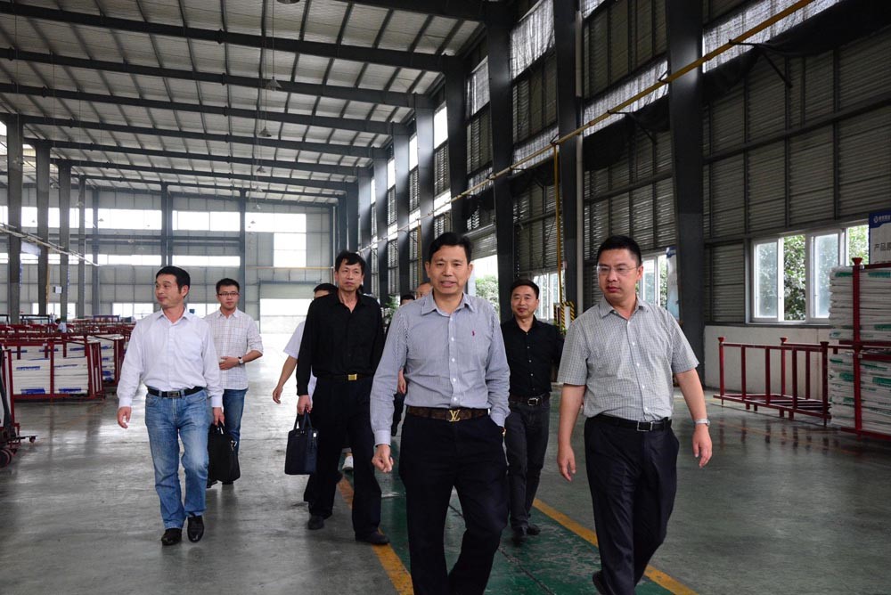 圖為林總裁陪同李市長(zhǎng)在車間參觀