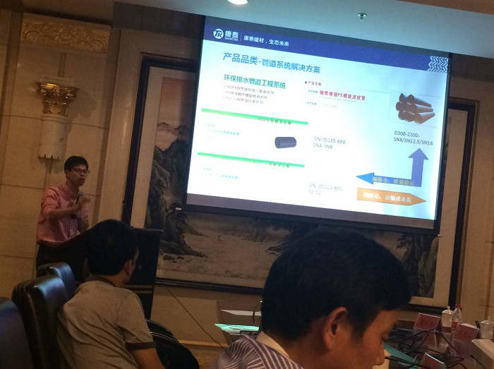 ?????? 隨后由遼寧康泰總經(jīng)理張文霖作《新產(chǎn)品規(guī)劃》報(bào)告,張總系統(tǒng)介紹了MPE、MPVE?、PE同層排水、特殊單立管、檢查井、高層排水HRS等新產(chǎn)品的規(guī)劃、實(shí)施進(jìn)展和功能賣點(diǎn),并對(duì)產(chǎn)品、材料、技術(shù)與營(yíng)銷的結(jié)合和市場(chǎng)定位作出闡述,明確今后每年將保持1-2款新產(chǎn)品作為康泰獨(dú)有領(lǐng)先的技術(shù)支持,不斷打造、提升康泰的技術(shù)研發(fā)能力,充分實(shí)現(xiàn)技術(shù)、創(chuàng)新推動(dòng)發(fā)展,打造產(chǎn)品對(duì)市場(chǎng)、營(yíng)銷的支撐力。