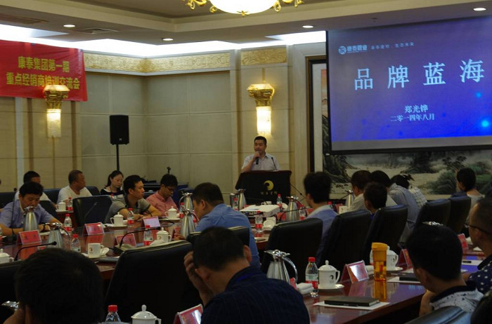 ?????? 接著由集團(tuán)總裁特助兼品牌總監(jiān)鄭光鏵作《品牌藍(lán)?!穲?bào)告,鄭總系統(tǒng)的從行業(yè)整體形勢(shì)、集團(tuán)頂層設(shè)計(jì)、品牌塑造、蔡總的成功經(jīng)營(yíng)模式與系統(tǒng)思維、新經(jīng)銷商思維、企業(yè)與經(jīng)銷商專業(yè)分工系統(tǒng)闡述匯報(bào),最終聚焦在品牌藍(lán)海為新的發(fā)展動(dòng)力和引擎。鄭總在2個(gè)小時(shí)的匯報(bào)中強(qiáng)調(diào)康泰集團(tuán)一定要建立在內(nèi)部強(qiáng)大基礎(chǔ)上的全面品牌塑造戰(zhàn)略與規(guī)劃,以立體、多元素的品牌塑造,明確康泰集團(tuán)就是要成長(zhǎng)為生態(tài)建材行業(yè)領(lǐng)導(dǎo)者品牌,做不了第一、做唯一,逐步跳出價(jià)格戰(zhàn)、全面向品牌營(yíng)銷、價(jià)值營(yíng)銷的藍(lán)海突圍。要求經(jīng)銷商要清晰定位、打開(kāi)思維、轉(zhuǎn)變思路,樹(shù)立信念、強(qiáng)大內(nèi)心,發(fā)揮團(tuán)隊(duì)、練好基本功,緊跟康泰的發(fā)展,大洗牌期間健康的活著,擴(kuò)大市場(chǎng)份額,蓄勢(shì)待發(fā),大洗牌結(jié)束,再次發(fā)展騰飛。共同努力實(shí)現(xiàn)康泰集團(tuán)全面品牌化、規(guī)范化、規(guī)?;膽?zhàn)略目標(biāo),發(fā)展共贏。