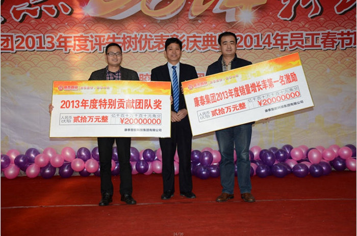 ??? 會議最后,集團董事長兼總裁林云青先生發(fā)表新年寄語,林總裁首先對獲獎的員工表示了祝賀,對還有很多沒有獲獎的默默付出的優(yōu)秀員工、對全體康泰員工2013年付出的辛勤努力表示感謝,林總裁表示:“時光飛逝,白駒過隙,2013年已經(jīng)過去,在白熱化的市場競爭和房產(chǎn)打壓的影響下,我們?nèi)w康泰人不斷探索,尋找屬于我們的方向,我們公司全力以赴,建立了獨特的推廣營銷模式,通過一區(qū)一策的營銷管理理念,通過全員的共同努力,全面完成了20%增長的年度經(jīng)營目標(biāo),并基本全面完成公司的各項指標(biāo),這是公司全體員工共同努力才取得的結(jié)果,我代表公司股東、董事及管理團隊衷心的感謝你們,希望全體康泰人在新的一年里,繼續(xù)保持務(wù)實勤儉、高效干練的先鋒工作作風(fēng),在新的一年里實現(xiàn)更大突破,取得更大成功。”