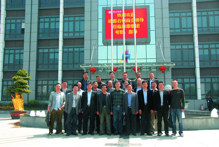??? 芬芳四月,風(fēng)和日麗。2013年4月13日,成都臺(tái)州商會(huì)企業(yè)家考察團(tuán)一行四十余人,在陳順?lè)〞?huì)長(zhǎng)的帶領(lǐng)下,來(lái)到崇州市,參觀考察了商會(huì)名譽(yù)會(huì)長(zhǎng)單位康泰塑膠科技集團(tuán),名譽(yù)會(huì)長(zhǎng)林云青和常務(wù)副會(huì)長(zhǎng)陳霞富熱情接待。