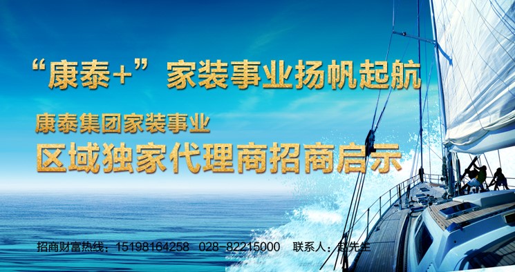 ? ? ? ?“康泰+”家裝事業(yè)現(xiàn)已面向全國誠招區(qū)域獨家代理商,選擇康泰,與康泰同行,您不再孤軍奮戰(zhàn),因為有康泰集團堅實后盾,有一支高效率的營銷團隊時刻準備著為您服務,您的事業(yè)我們全程陪伴、共同前行!現(xiàn)區(qū)域獨家代理首次全線開放,獨霸一方的市場機會僅有一次,全城獨家代理商僅有一席,請您亮劍!