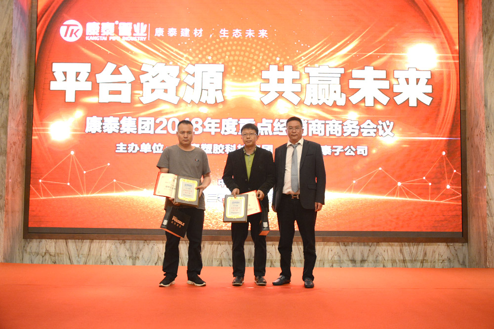 汶川加林建材銷(xiāo)售有限公司、四川鴻凱新型建材有限公司、杭州顧地建材有限公司分獲康泰集團(tuán)“2017年度增量第一名、第二名、第三名”;