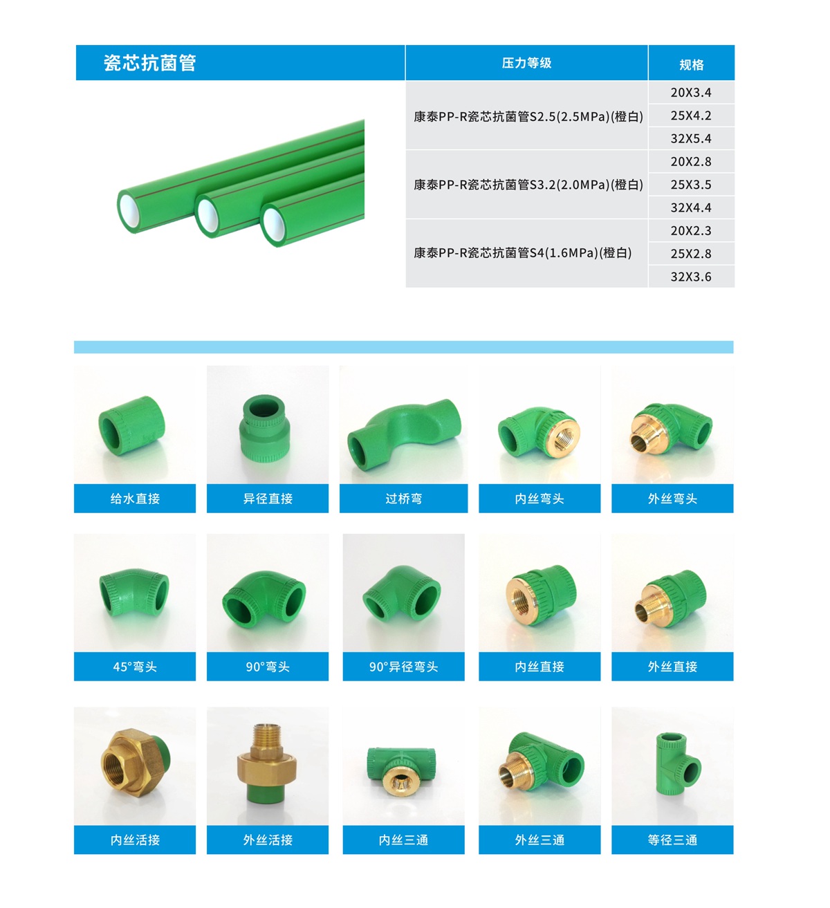 康泰PPR瓷芯抗菌管道系列: