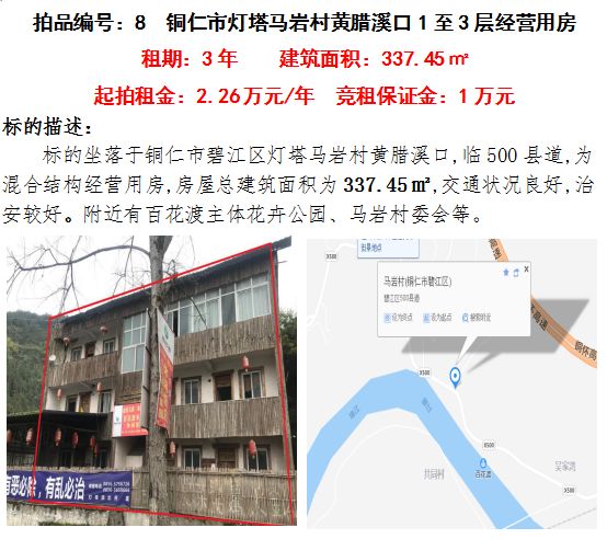 六、銅仁市碧江區(qū)燈塔馬巖村黃臘溪口13層經(jīng)營3年租賃權(quán)(建筑面積:337.45㎡);