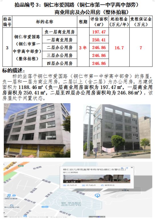 三、銅仁市愛國路(銅仁市第一中學(xué)高中部旁)負(fù)一層至四層商業(yè)用房及辦公用房3年租賃權(quán)建筑面積1188.46㎡);