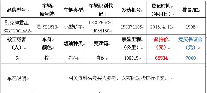 拍品編號(hào)4:別克牌君越小型轎車一輛