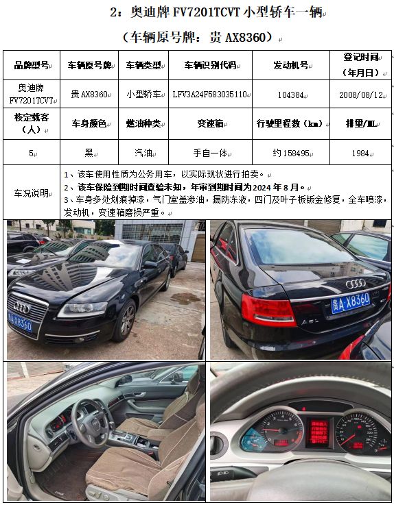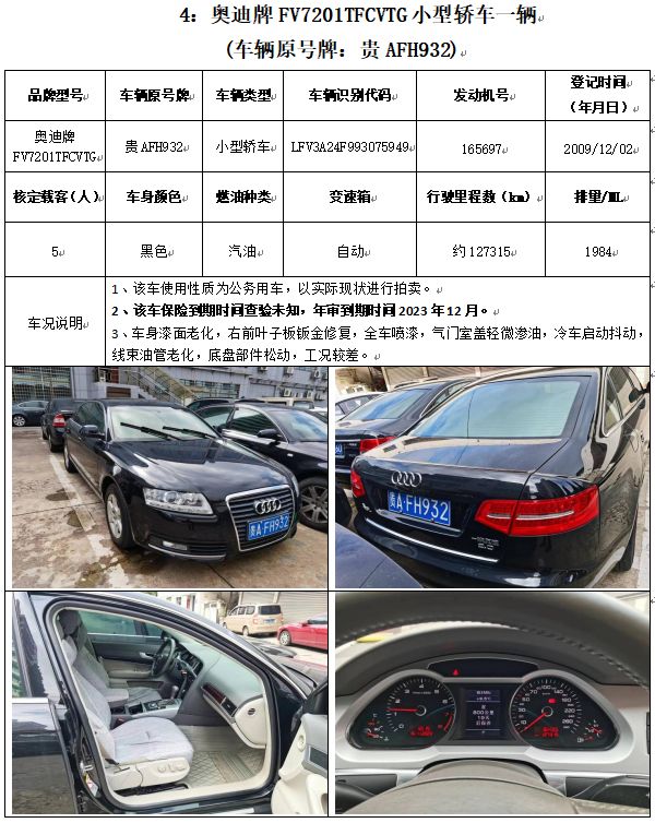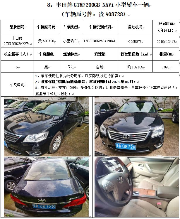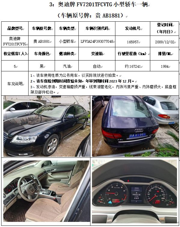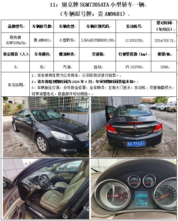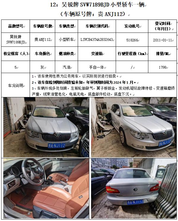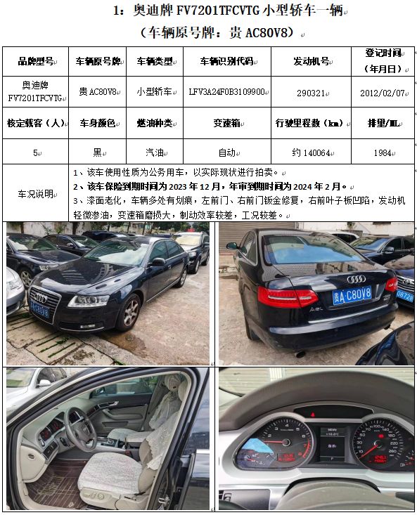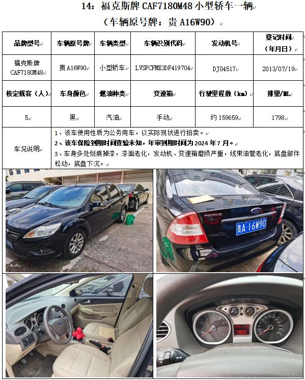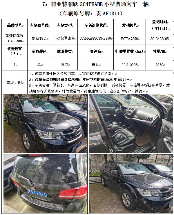 奧迪牌、菲亞特菲躍牌、豐田牌、別克牌、昊銳牌、雪佛蘭牌、福克斯牌等車輛,共計(jì)14輛(整體拍賣)。