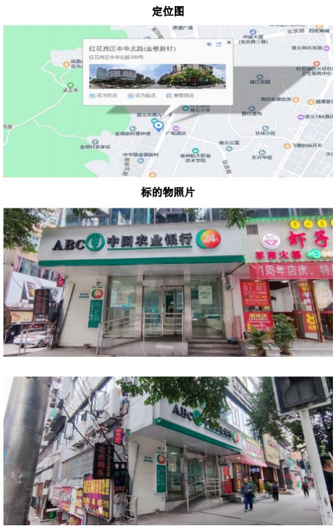 1、該標的位于貴州省遵義市紅花崗區(qū)中華南路群力大廈1層,東臨中華南路,其余三面臨其他物業(yè)地塊,周邊商業(yè)氛圍濃重,交通便利,水、電設(shè)施齊全。標的按照銀行營業(yè)點進行過簡單裝修。