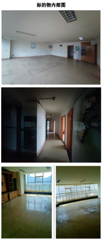 2、房屋總層數(shù)為25層,該標的所在層數(shù)為7層,證載房屋建筑面積為375.23㎡,標的規(guī)劃用途為辦公用房,房屋建筑結(jié)構(gòu)為鋼混,目前為閑置狀態(tài)。